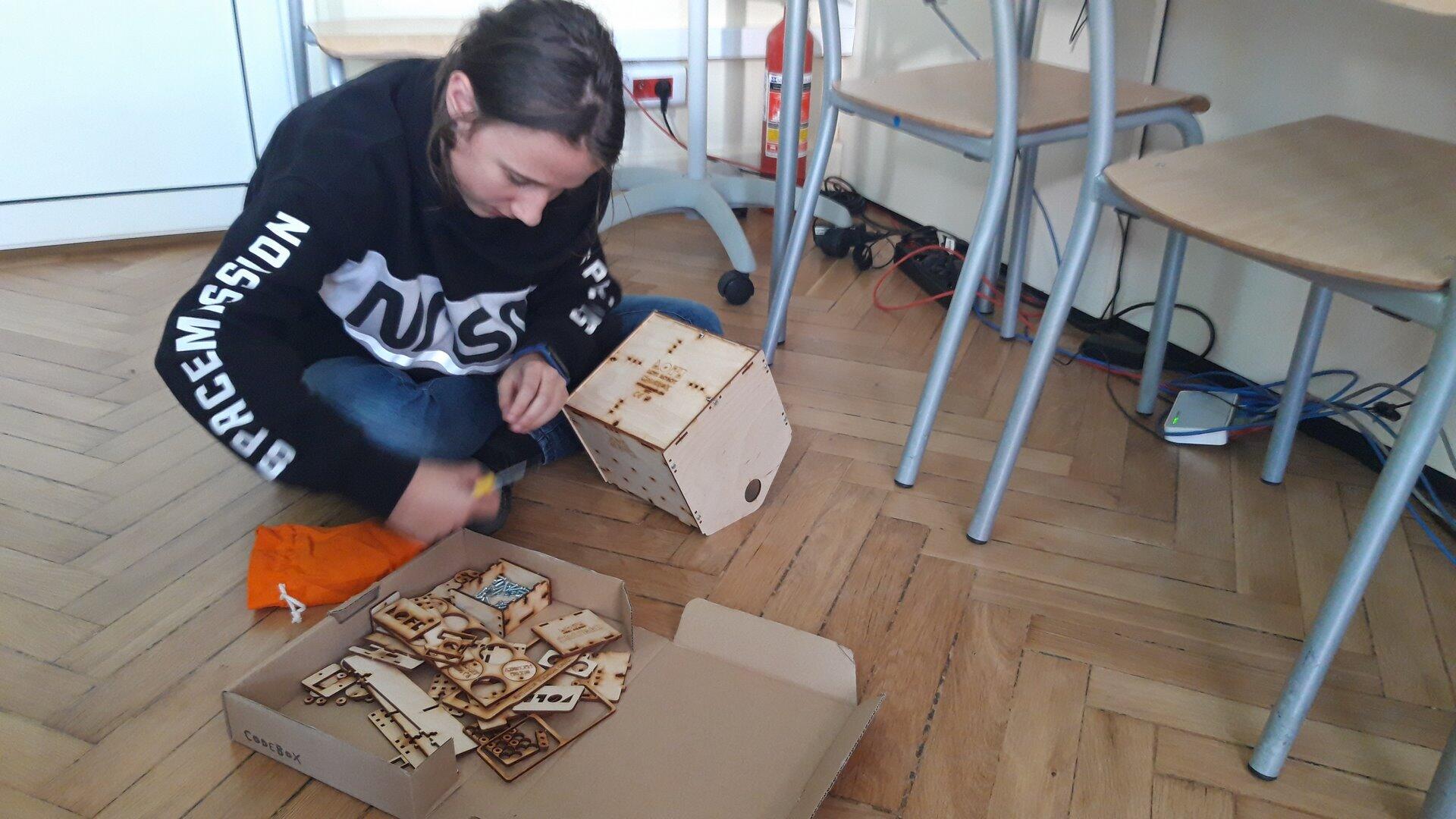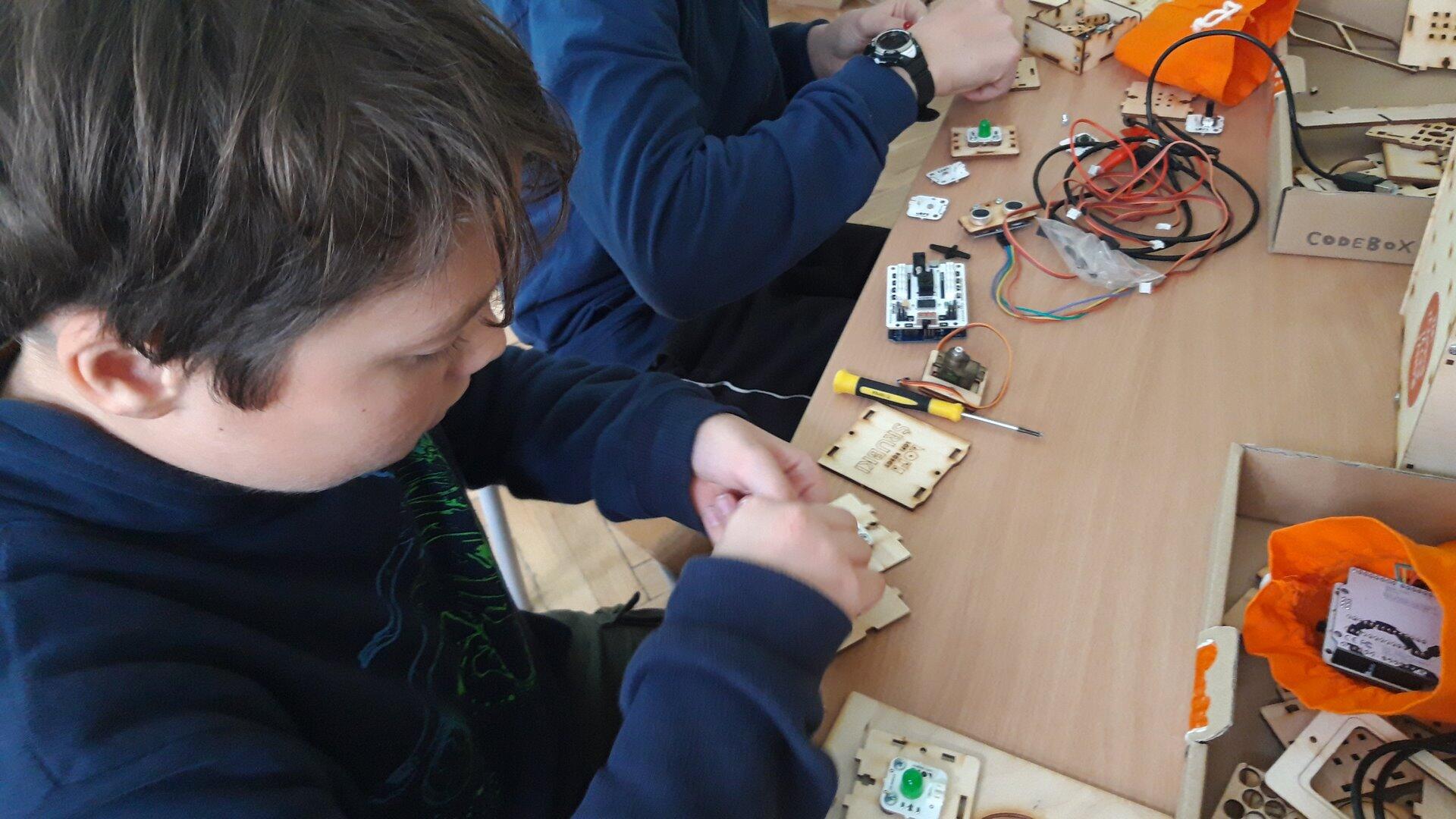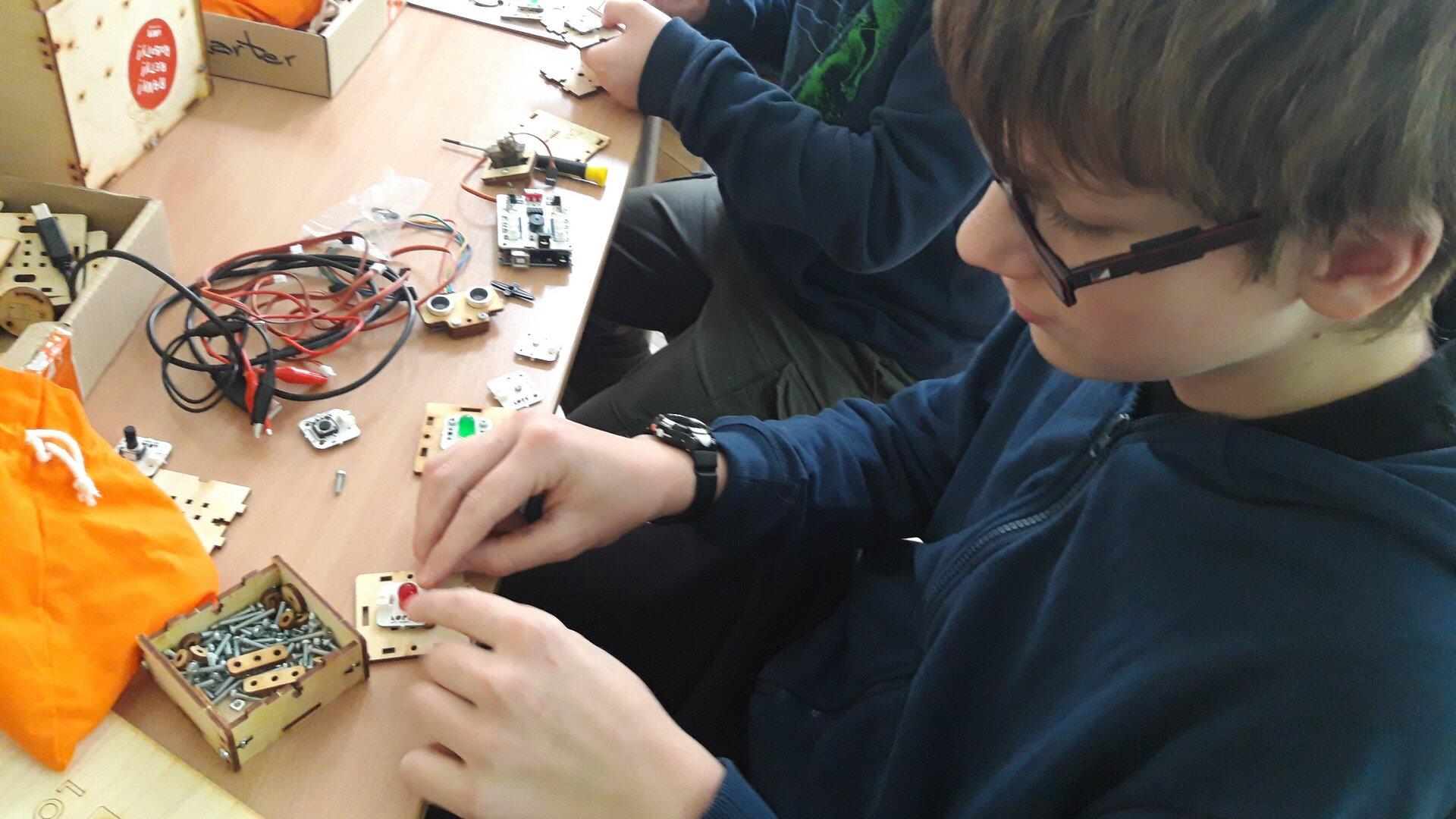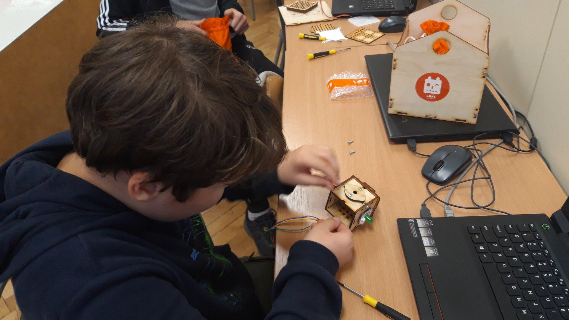 Na pierwszych zajęciach z robotyki dowiedzieliśmy się czym jest robot oraz jaka jest różnica między maszyną, a robotem. Omówiliśmy z jakich części będzie składał się "Głowacz", którego następnie konstrułowaliśmy przez cały miesiąc. Zbudowaliśmy również domki dla naszych robotów. Podczas pracy było nam potrzebnych mnóstwo śrubek, dla których skręciliśmy pudełko, żeby ich nie pogubić :) Majterkowanie już za nami pora na programowanie.