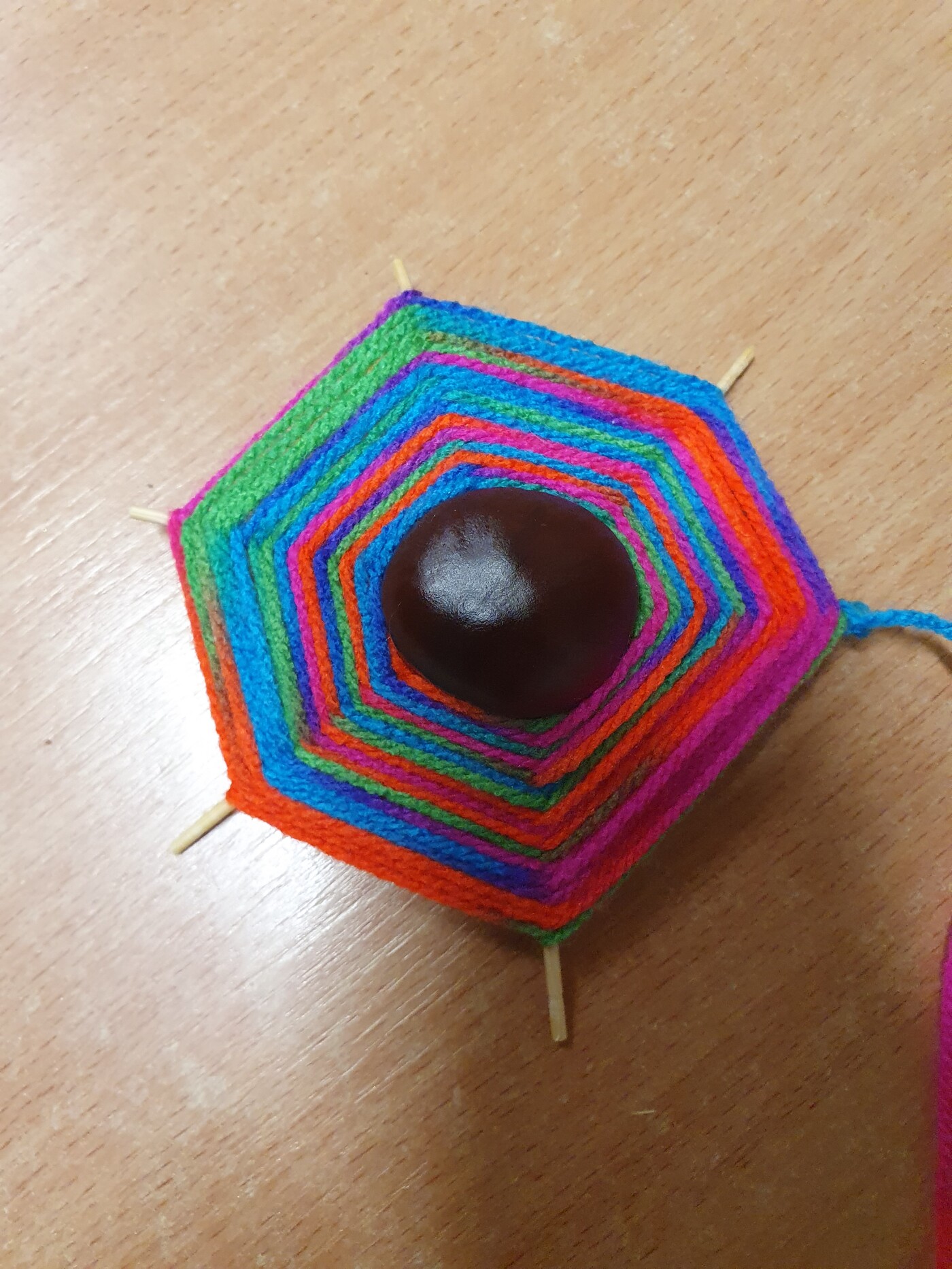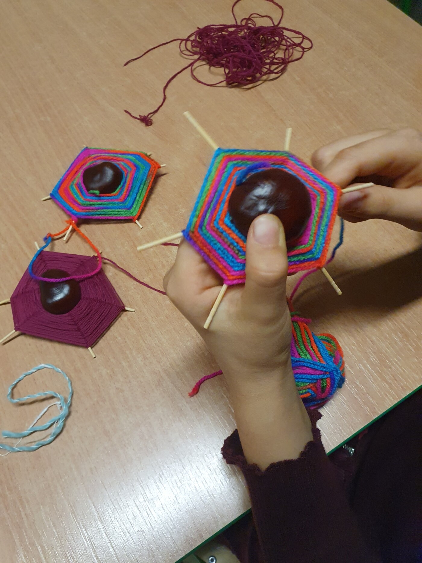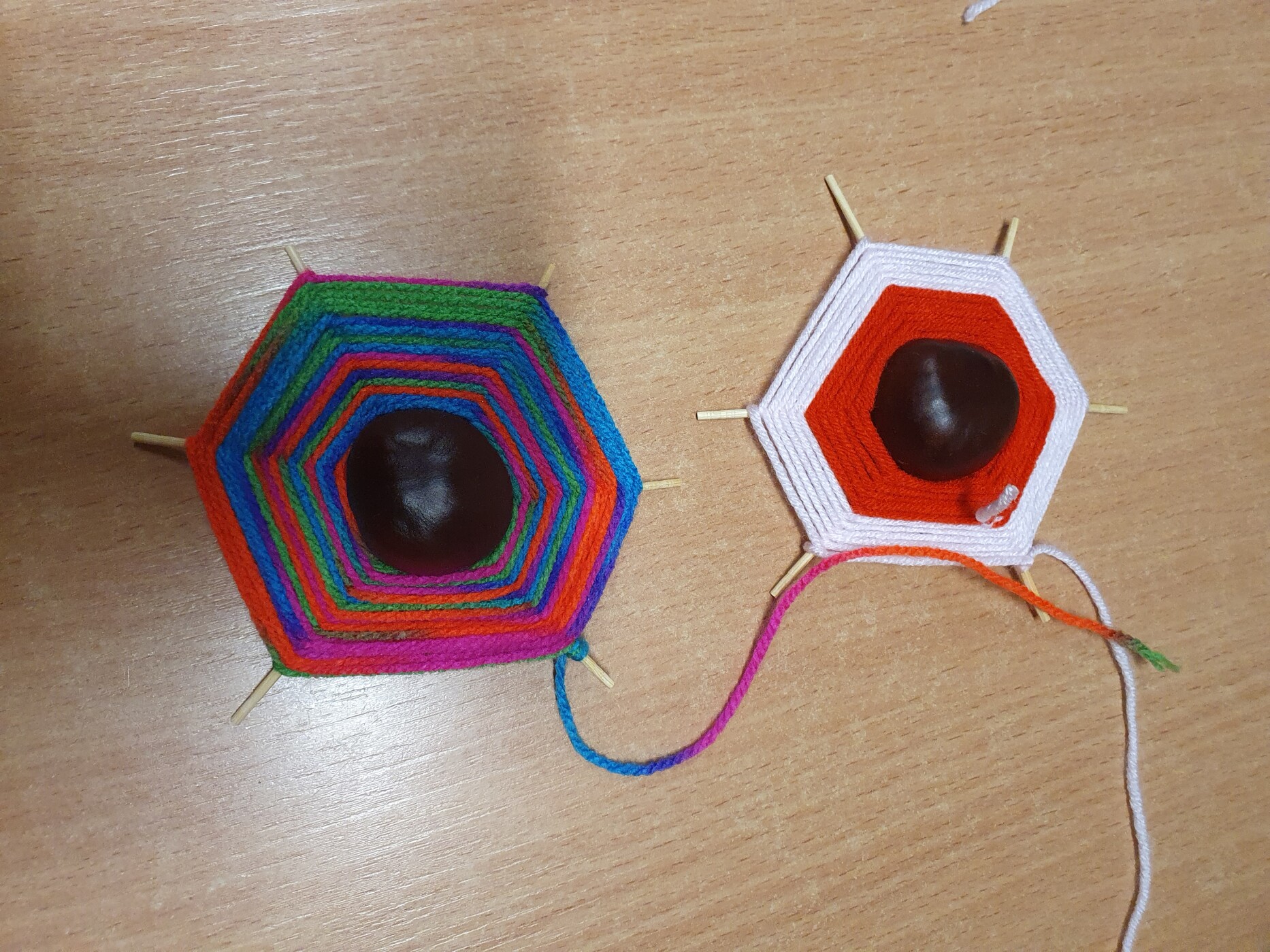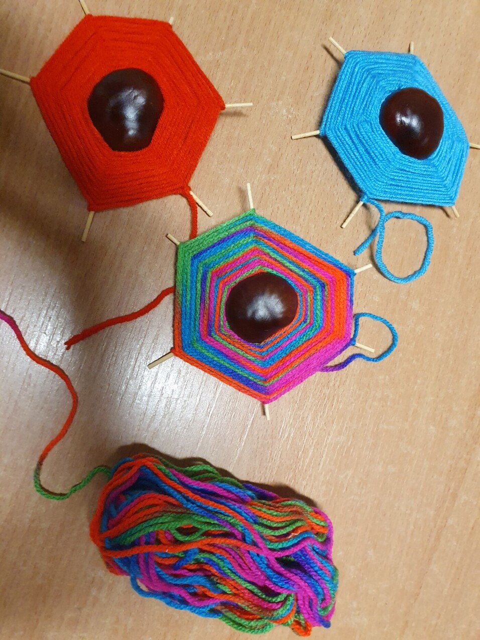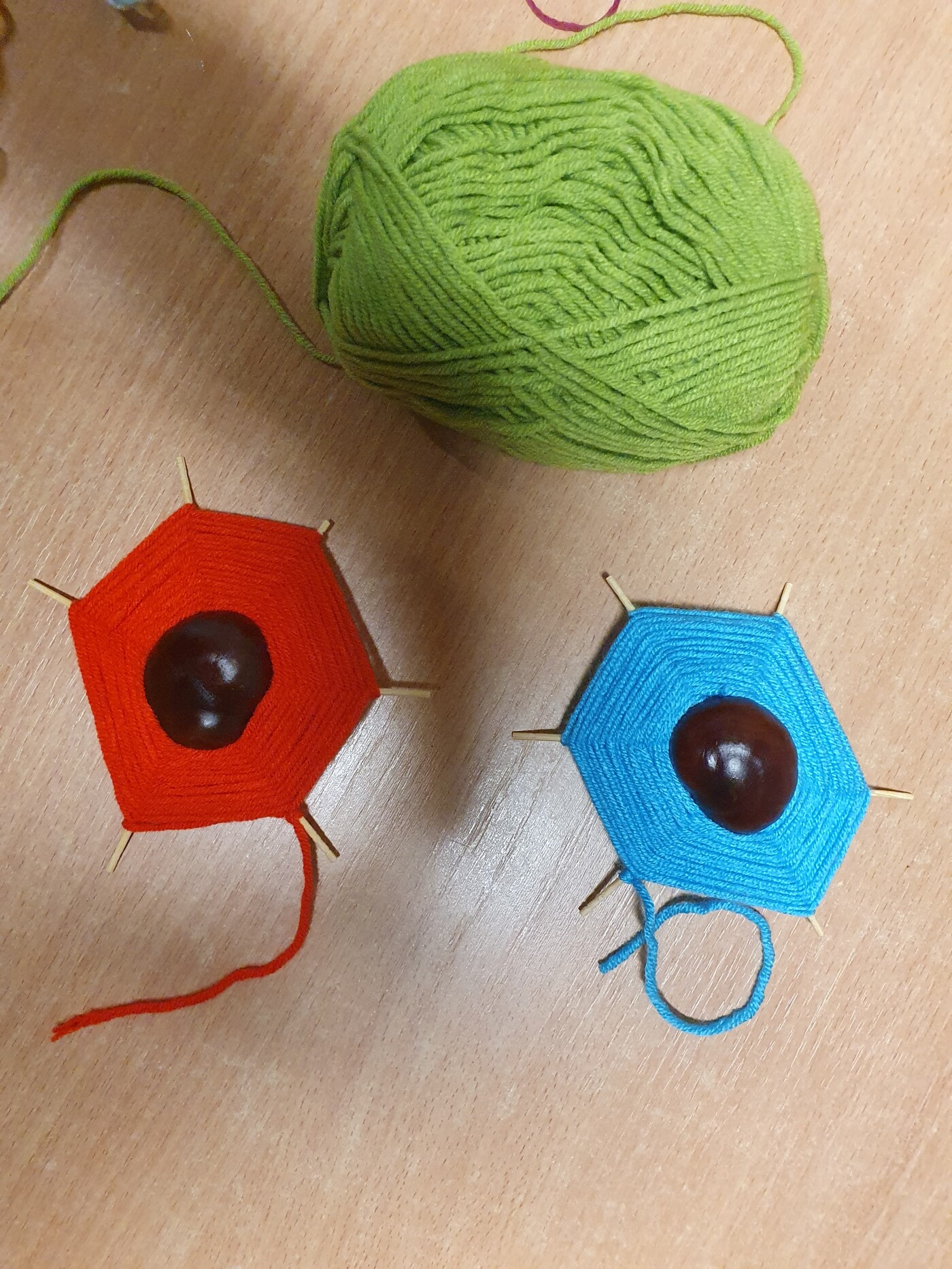 Koło plastyczne "RADOŚĆ TWORZENIA"- PAJĘCZYNKI Z KASZTANÓW I WŁÓCZKI