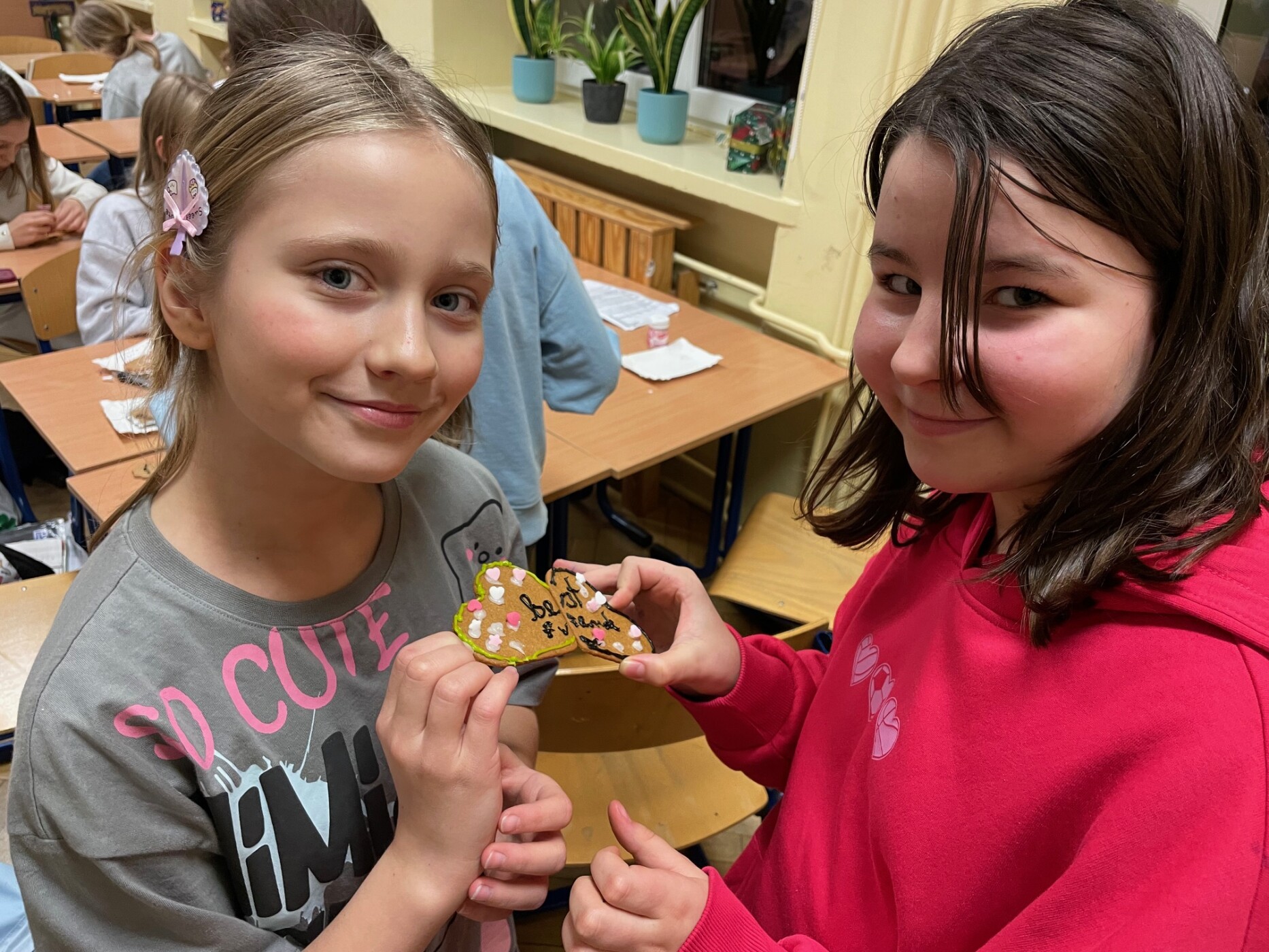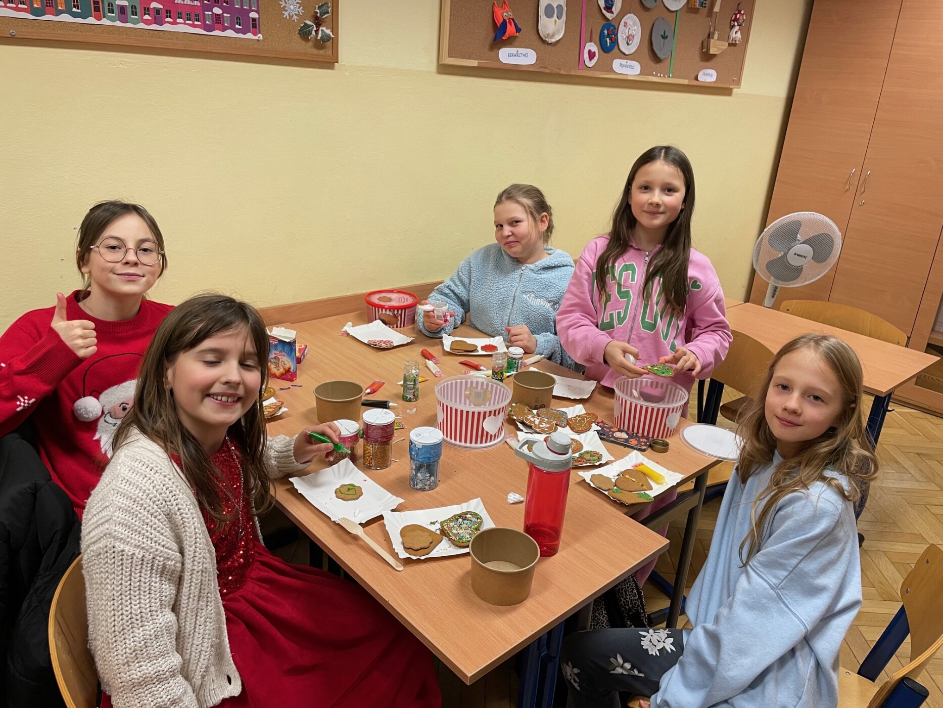 Miłym akcentem, który stał się naszą tradycją jest świąteczne dekorowanie pierniczków. Poziom słodyczy wymieszanej z cynamonem i kardamonem był tego dnia w szkole bardzo wysoki. Dziękujemy Radzie Rodziców, która pomogła w organizacji tej niespodzianki.